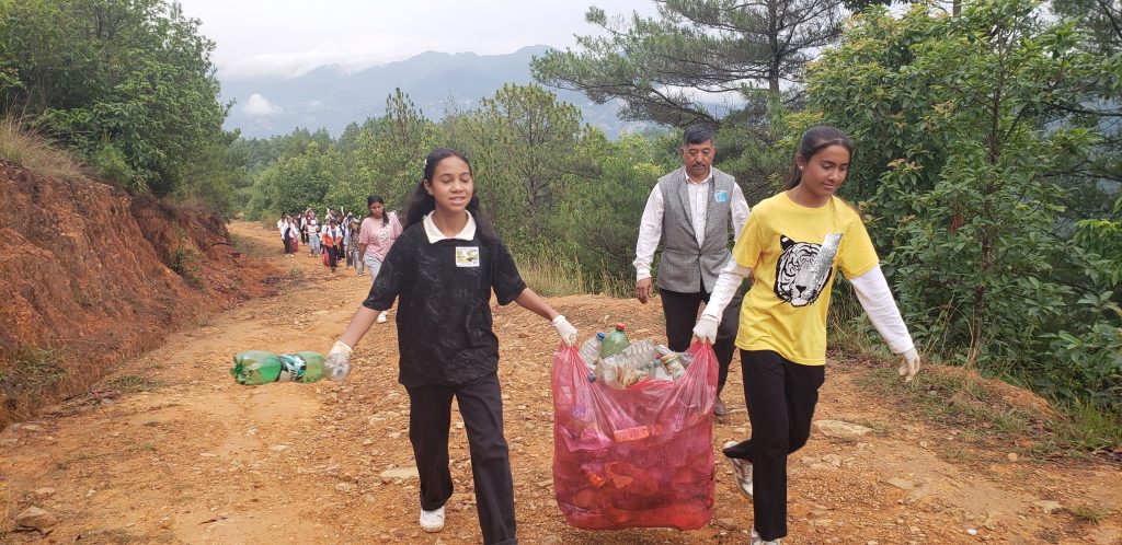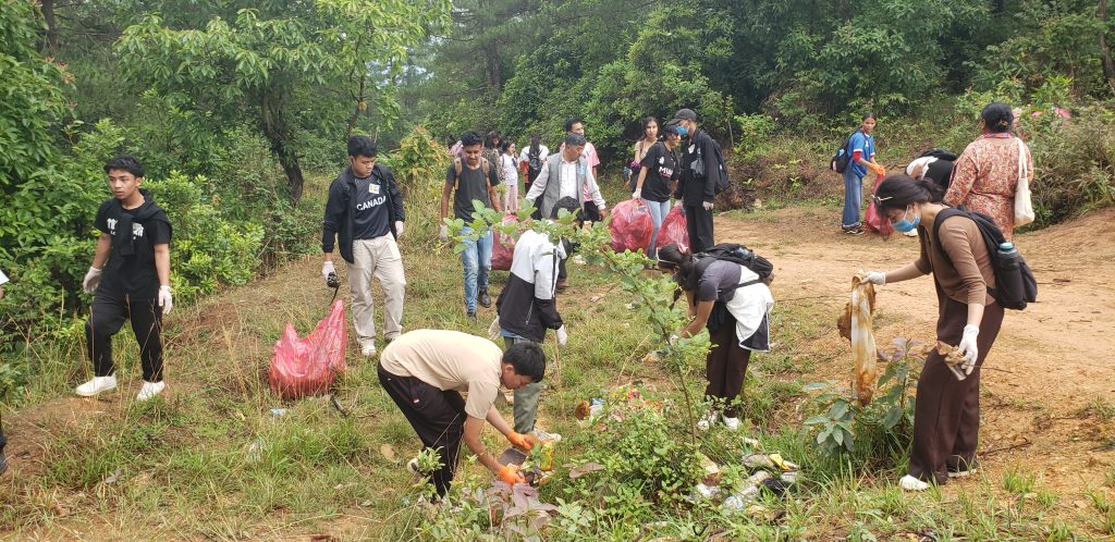 In collaboration with Rukmini Foundation, Shikharapur Campus, and with generous support from Ward No. 9, Dakshinkali Municipality, the program included a cleaning campaign at the historic Old Dakshinkali Temple premises and the scenic Bhundole hiking trail. This effort was further supported by intern students from Thames International College, Kathmandu. Students of college, open school and participants from different ongoing trainings participated the cleaning campaign.